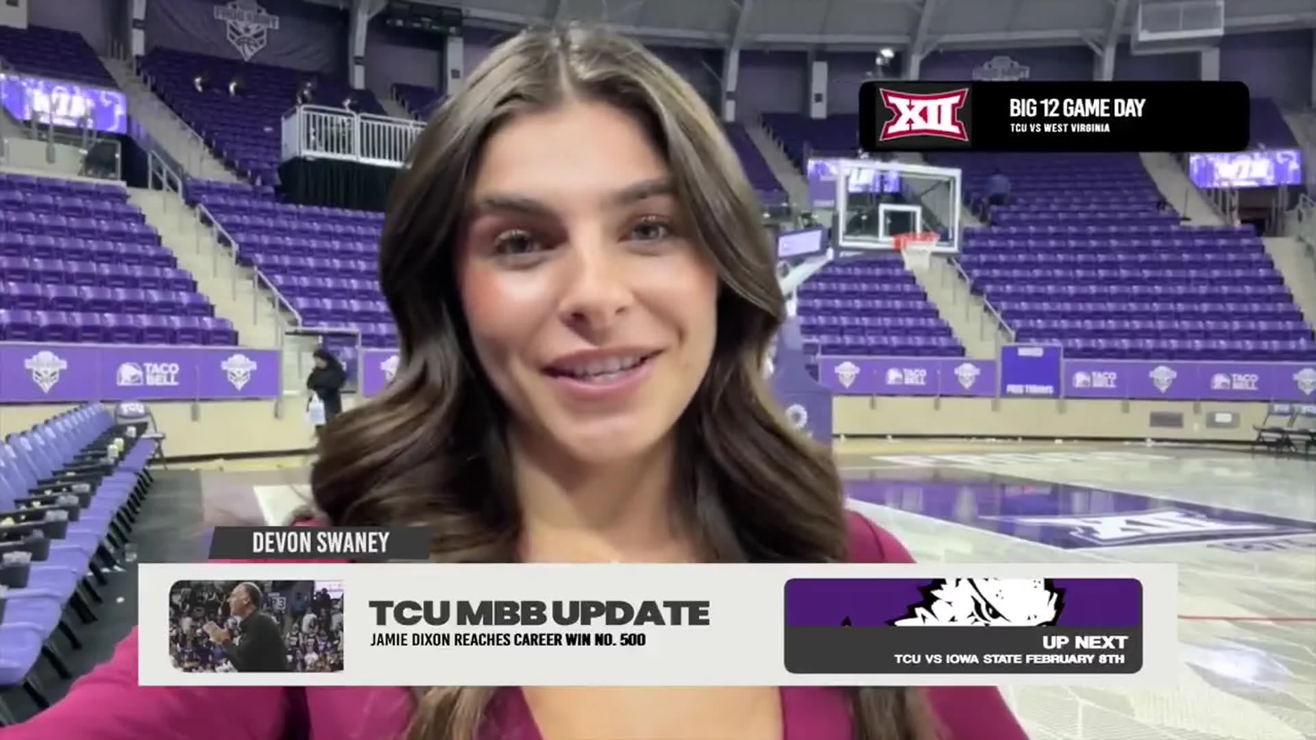 TCU Head Coach Jamie Dixon secured his 500th career win when the Horned Frogs took down the West Virginia Mountaineers, with a final score of 65-60.